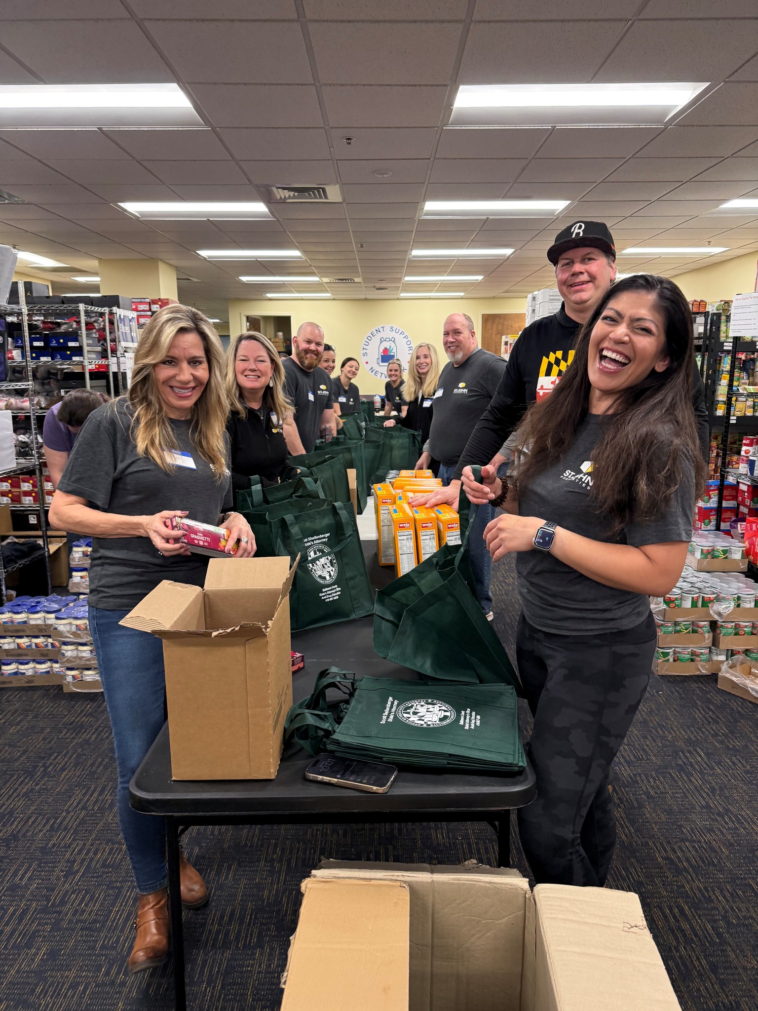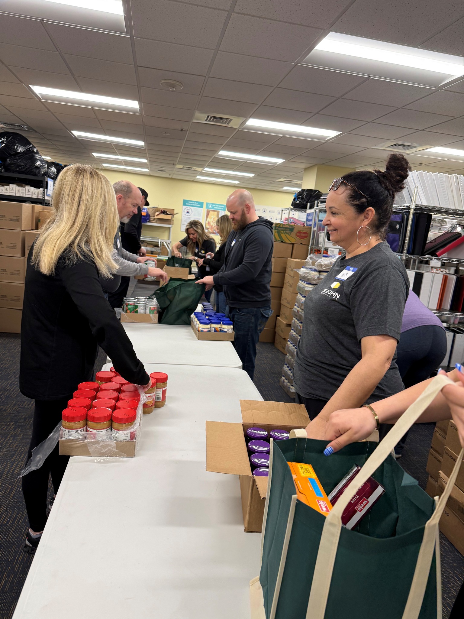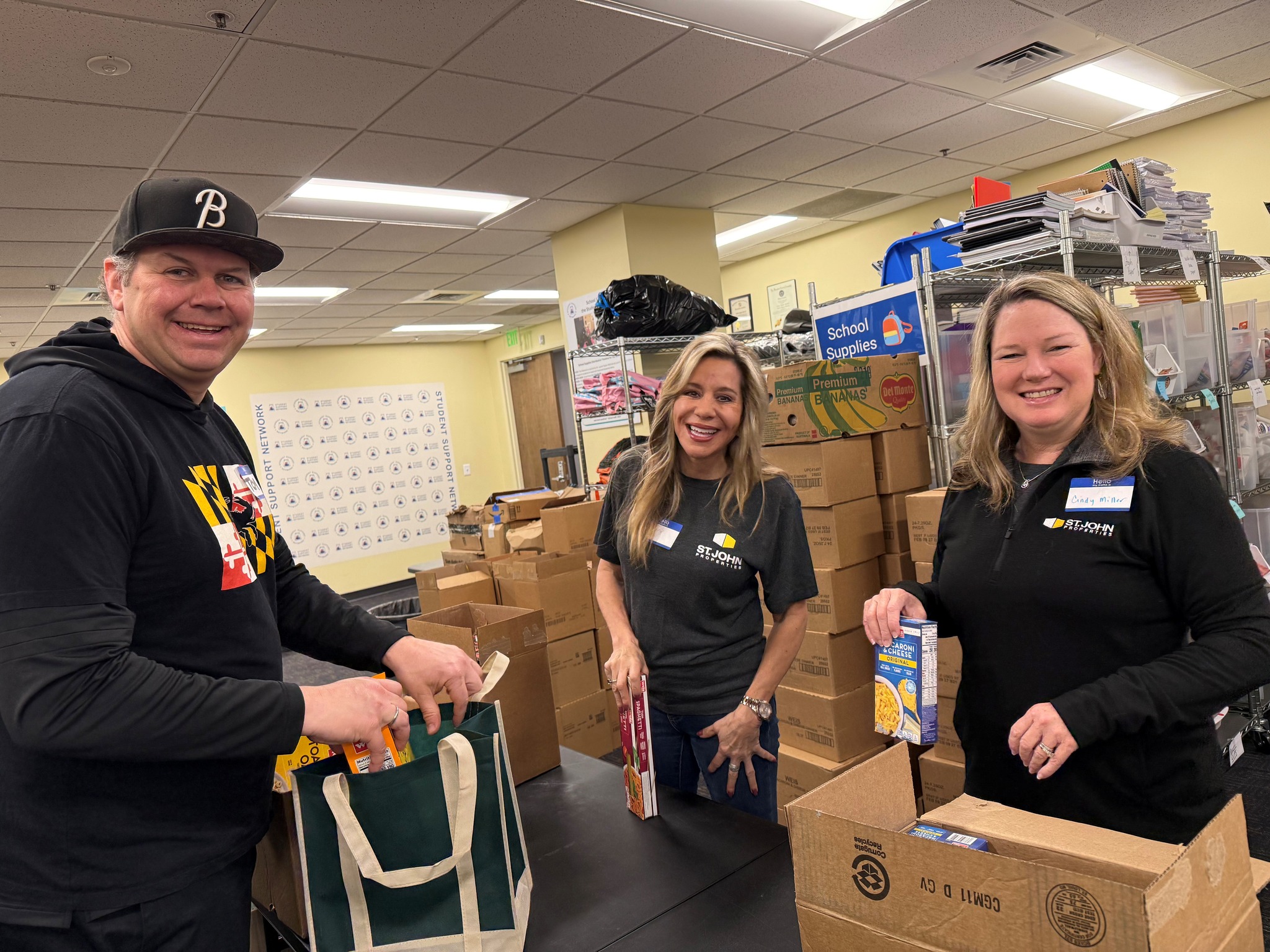 A big thank you to our friends St. John Properties, Inc. and our amazing regular volunteers for helping pack 532 weekend food bags in preparation for Spring Break!